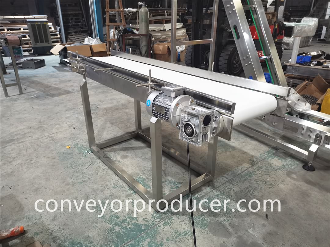 1. Body material: 304 stainless steel, carbon steel. Belt material: food grade of PU,PVCchain plate: PP,POM,PE,multi-material & coloroptional.