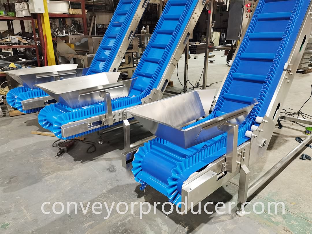 The skirt belt is added from the belt to the skirt with two-way, Tightly squeeze and form the whole skirt skin with super glue and mechanical mold. Integral rotary feeding and conveying, It is mainly suitable for conveying powdery items in the material. Small bags of goods, chemical supplies. Powdered flour, various powdered items, fried materials or powdery materials on the outer surface, etc., transport the materials from a low place to the desired position.